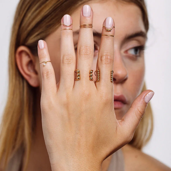 Le détail qui change tout. Une bague d’ongle délicate, au tissage de perles raffiné.