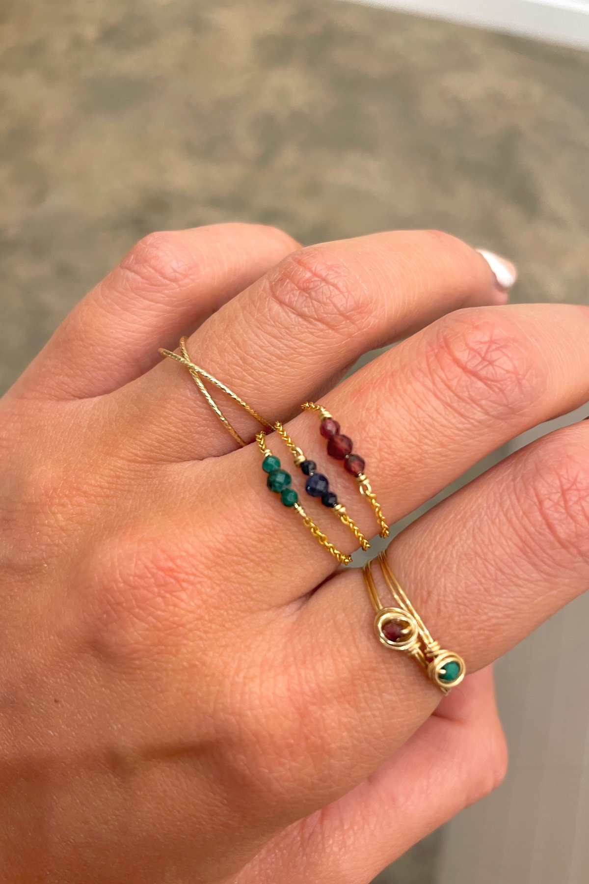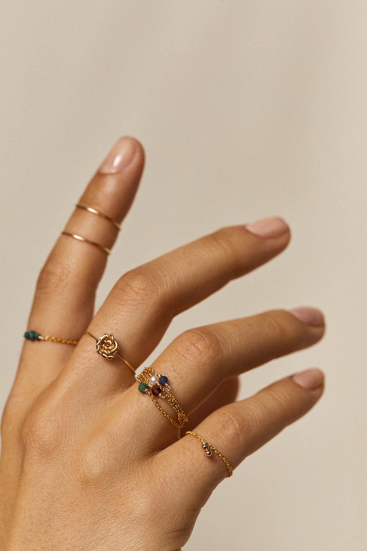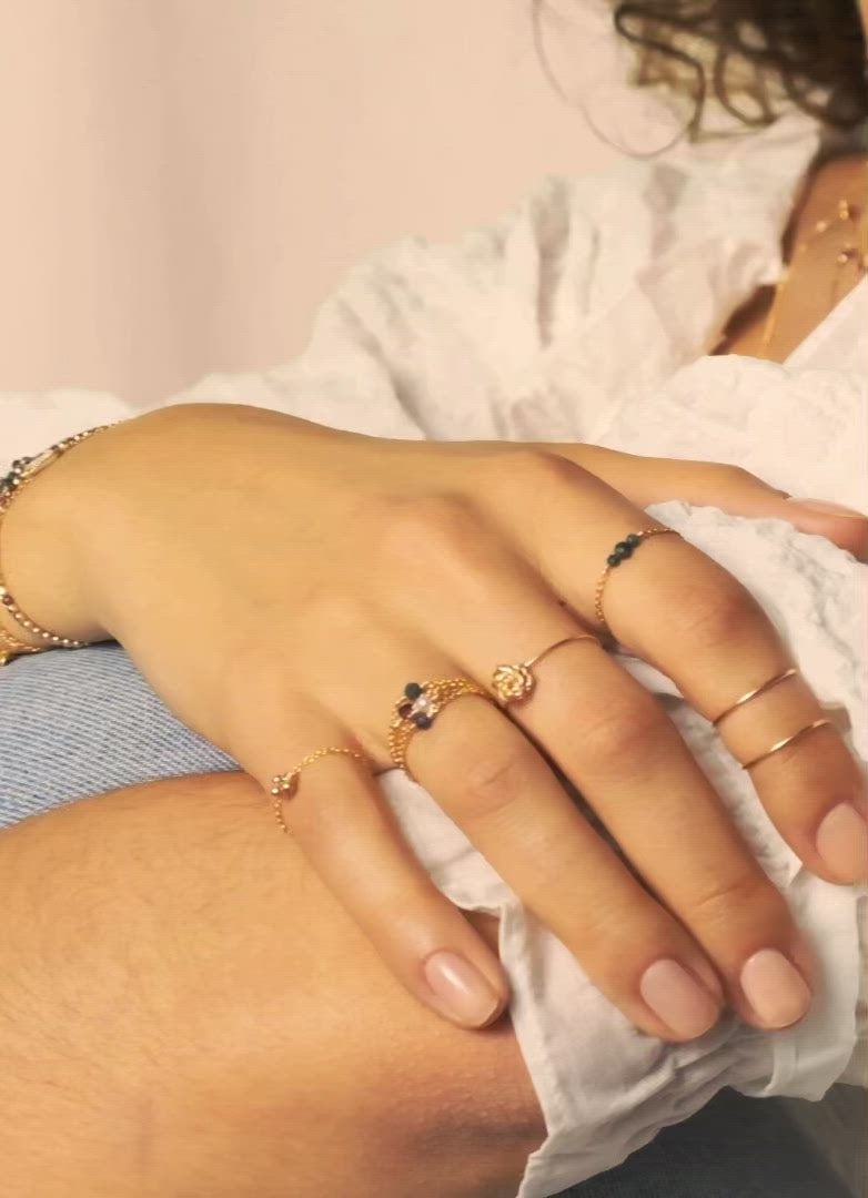 The Chance ring is one of our timeless designs, which we offer in new stones every season. One, two, three chain rings:pile them up for an even bigger wow factor!