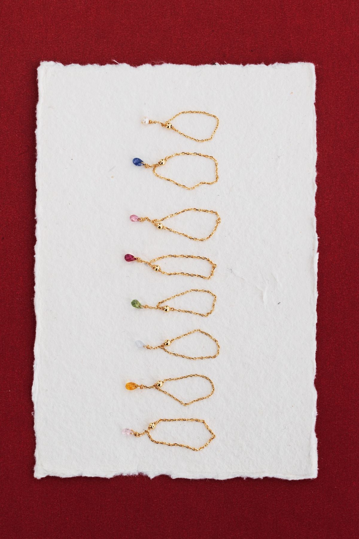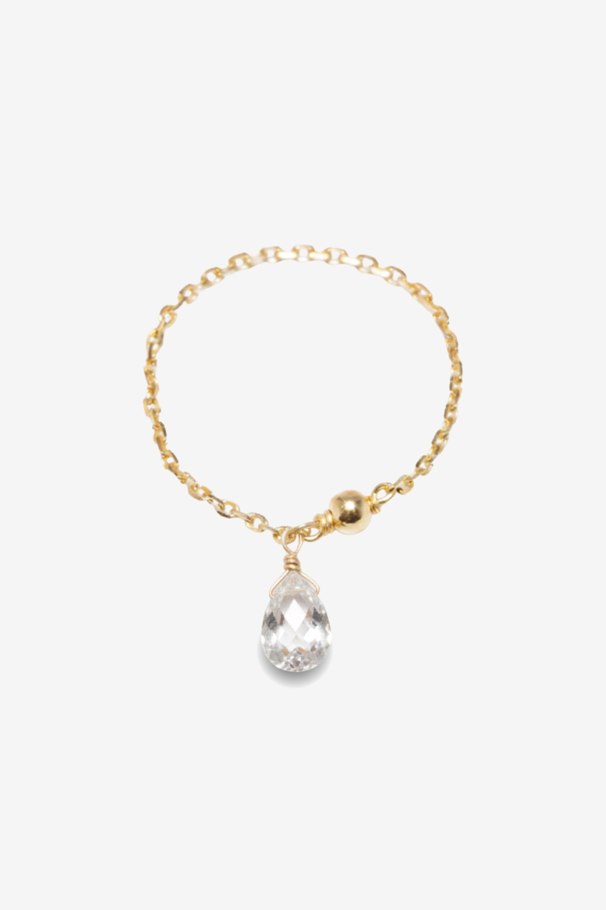 With its delicate design and suspended drop, the Mia drop chain ring captures the essence of minimalist elegance. Adorned with a white sapphire, this piece adds a vibrant touch of light to your hand, perfect for those seeking to elevate their everyday style with subtlety.