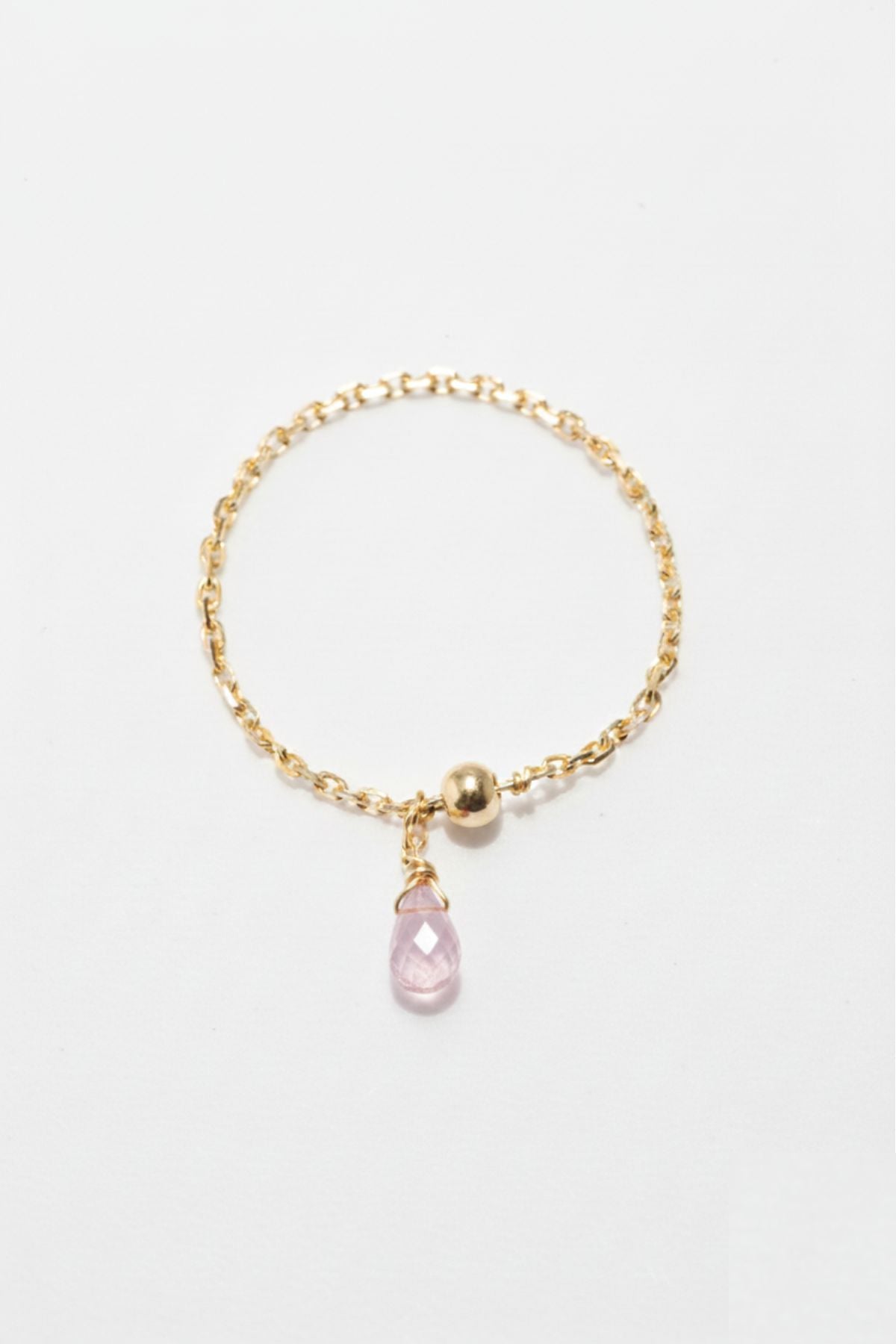 With its delicate design and suspended drop, the Mia drop chain ring captures the essence of minimalist elegance. Adorned with a light pink sapphire, this piece adds a vibrant touch of color to your hand, perfect for those seeking to elevate their everyday style with subtlety.