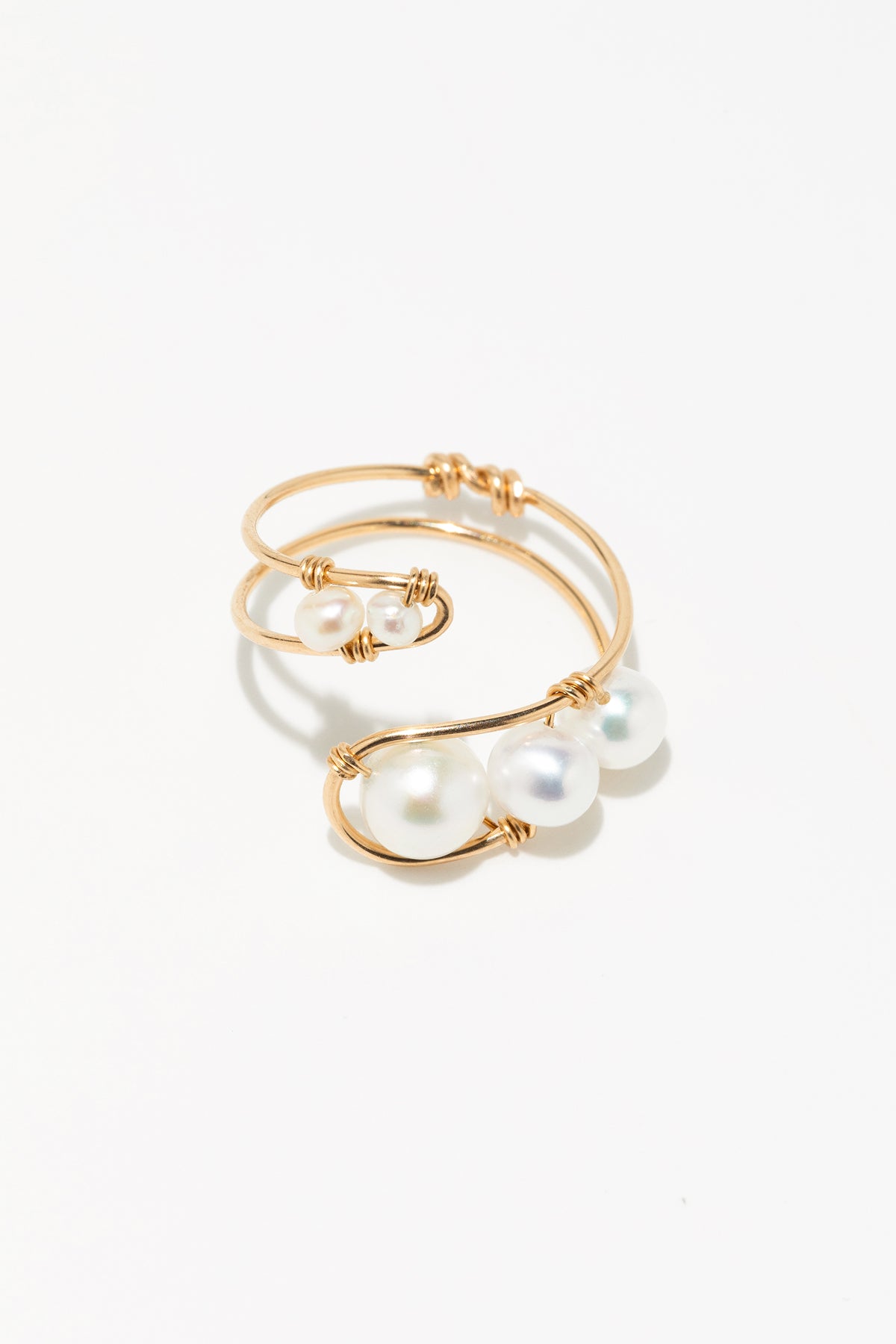 The Moana ring celebrates the fluidity and grace of the marine world. Its open, adjustable design features two delicate branches that flare out over the top of the finger, each ending in an elongated teardrop adorned with a weave of cultured pearls in varying sizes. This light and refined piece of jewelry elegantly adorns the finger, evoking the gentleness of the waves and the radiance of mermaids.