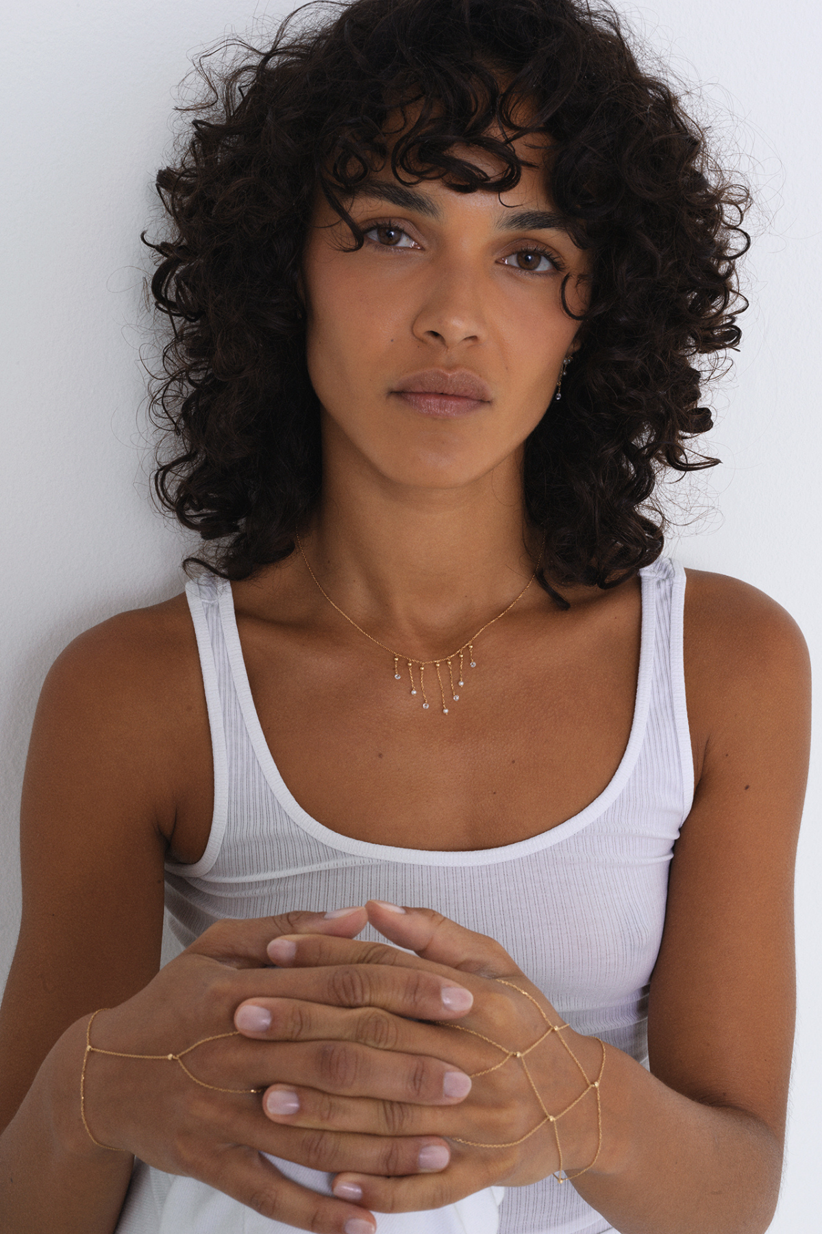 Light and resistant, the hand jewel is designed to be worn every day and delicately caress the skin.