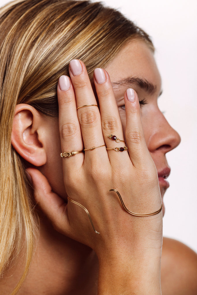 Fine and light jewelry, designed to sit naturally in the palm.