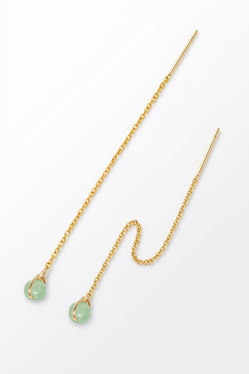 Minimalism and structure, the Stella ear jewel is a must-have piece. Its light and airy design highlights a natural stone entwined with a thread of gold, knotted at the end of a fine gold chain.
