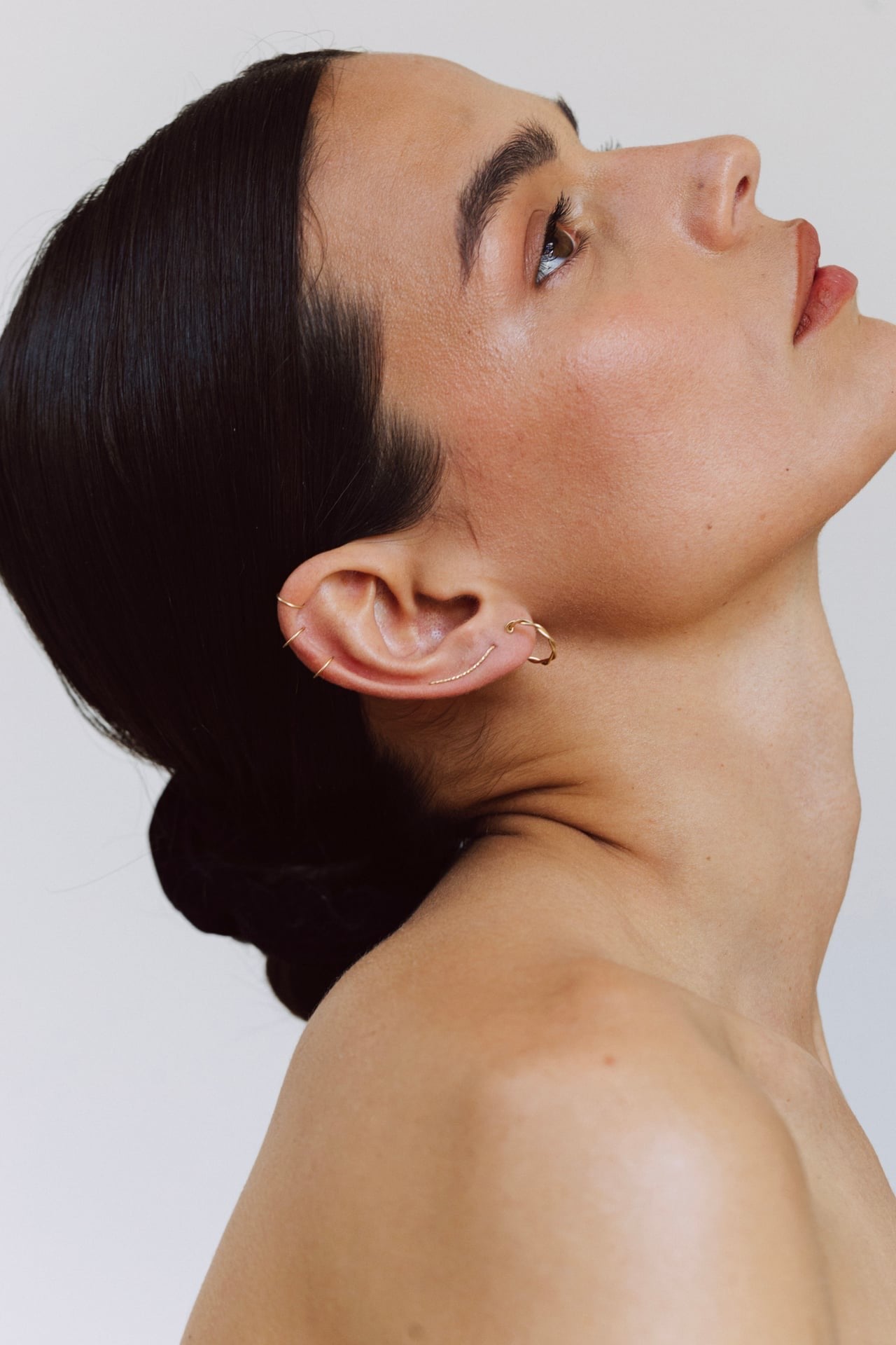 Made of shiny twisted wire, this delicate and original earring dresses up the entire lobe but only requires one hole! It is easy to combine with chips and creoles.