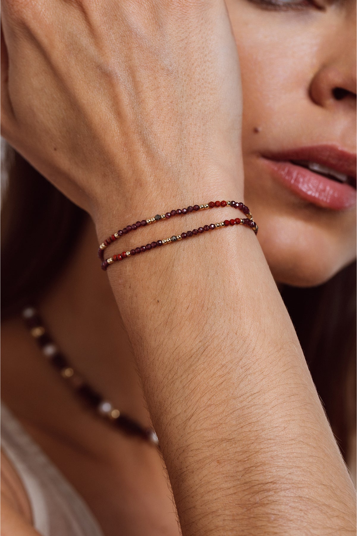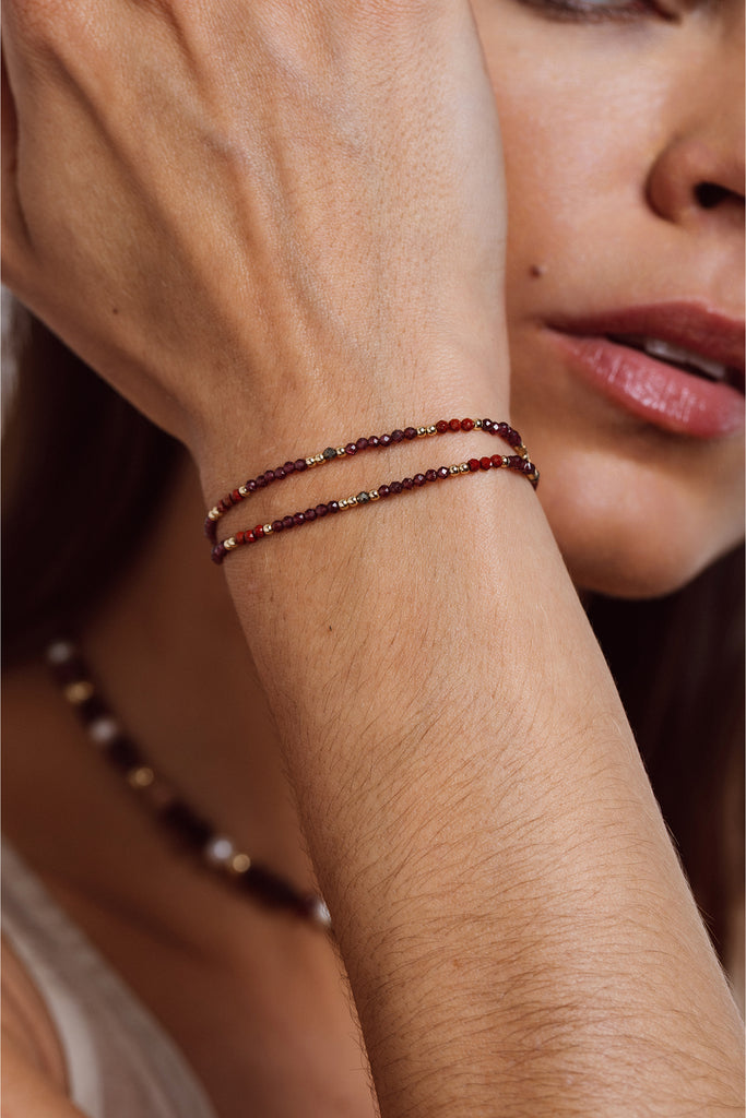 2 mm natural stones: Red Garnet, Pyrite, Red Jasper