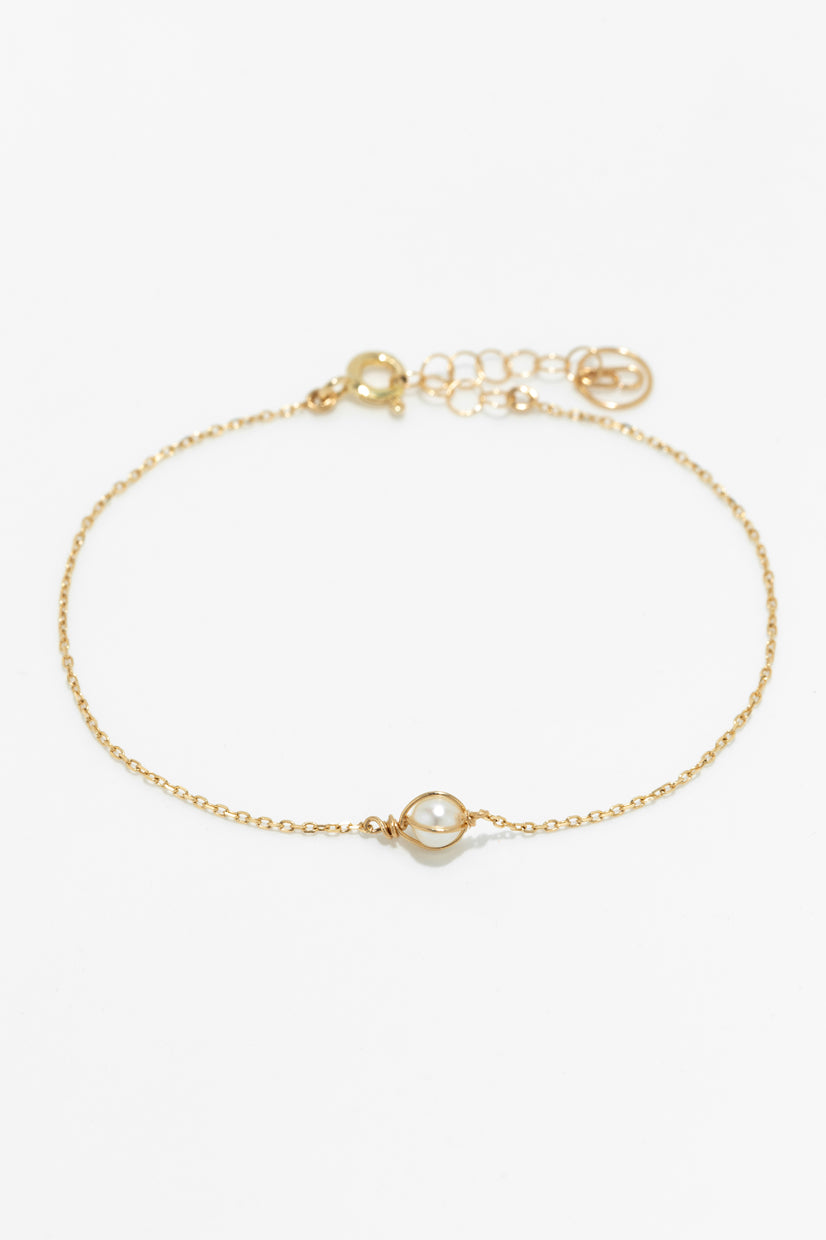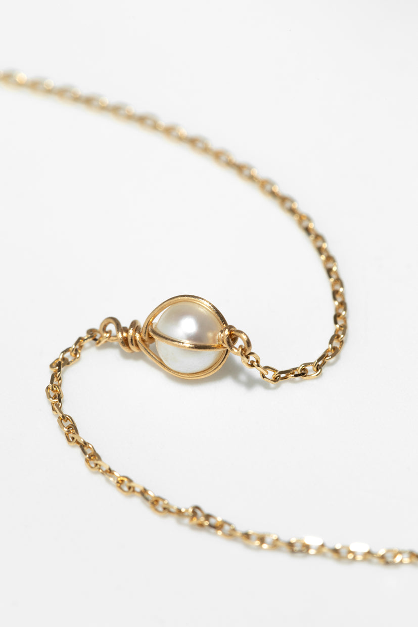 The Stella bracelet stands out for its minimalist and unique design. An enchanting round cultured pearl (certified AAA) is intertwined with delicate gold thread, a testament to the art of wirework and craftsmanship unique to the house.