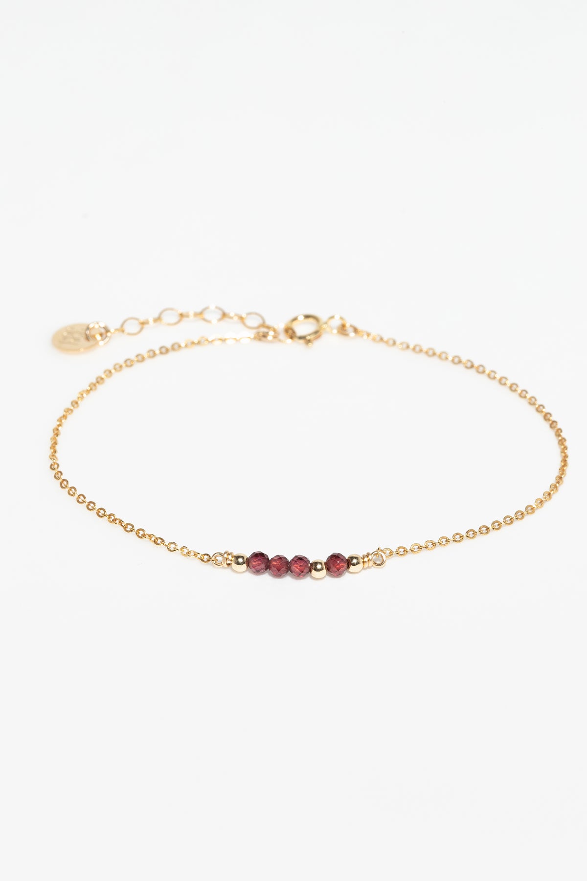 The Théa bracelet features fine faceted stones tied on a delicate gold thread.