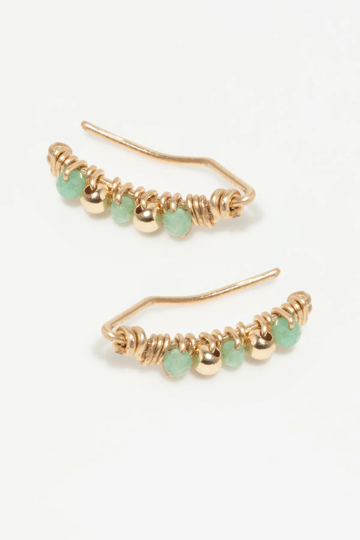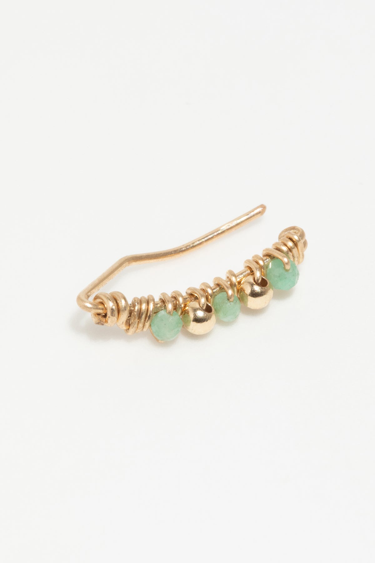 A unique piece, the Frida climber highlights the artisanal craftsmanship of the house, the art of wire. Inspired by the graceful curves of a climbing stem, this unique earring adorns the earlobe with subtlety through the weaving of fine stones and pearls on a gold wire.