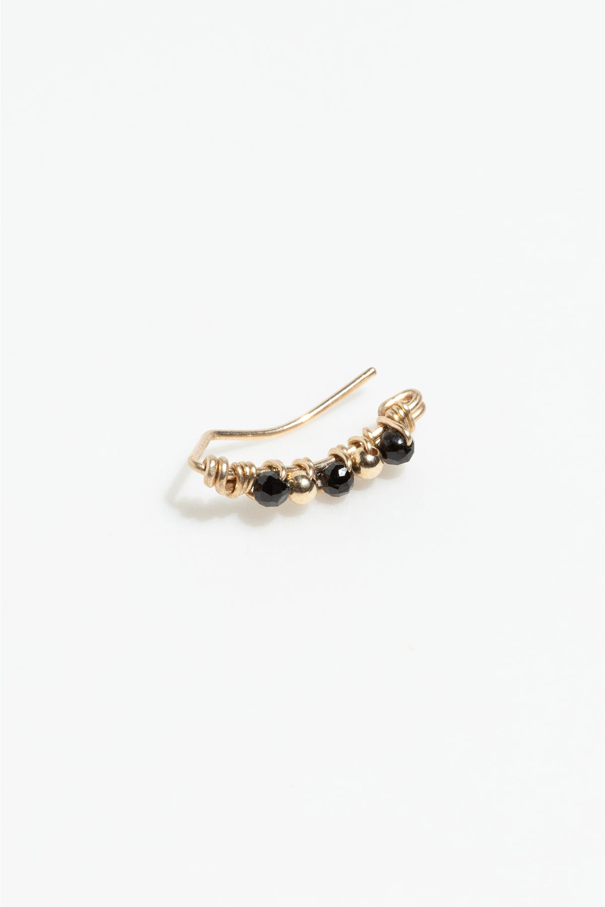 A unique piece, the Frida climber highlights the artisanal craftsmanship of the house, the art of wire. Inspired by the graceful curves of a climbing stem, this unique earring adorns the earlobe with subtlety through the weaving of fine stones and pearls on a gold wire.