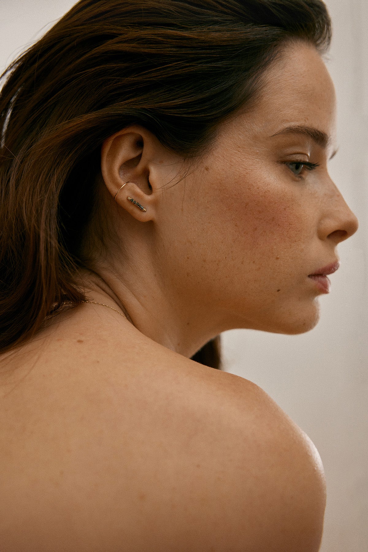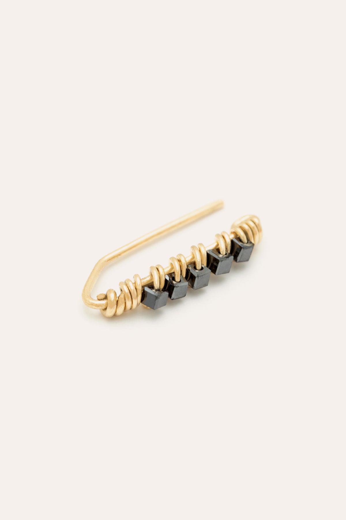 An exceptional piece, this 750/1000 gold jewel is adorned with black diamonds cut in cubes to embellish the earlobe.