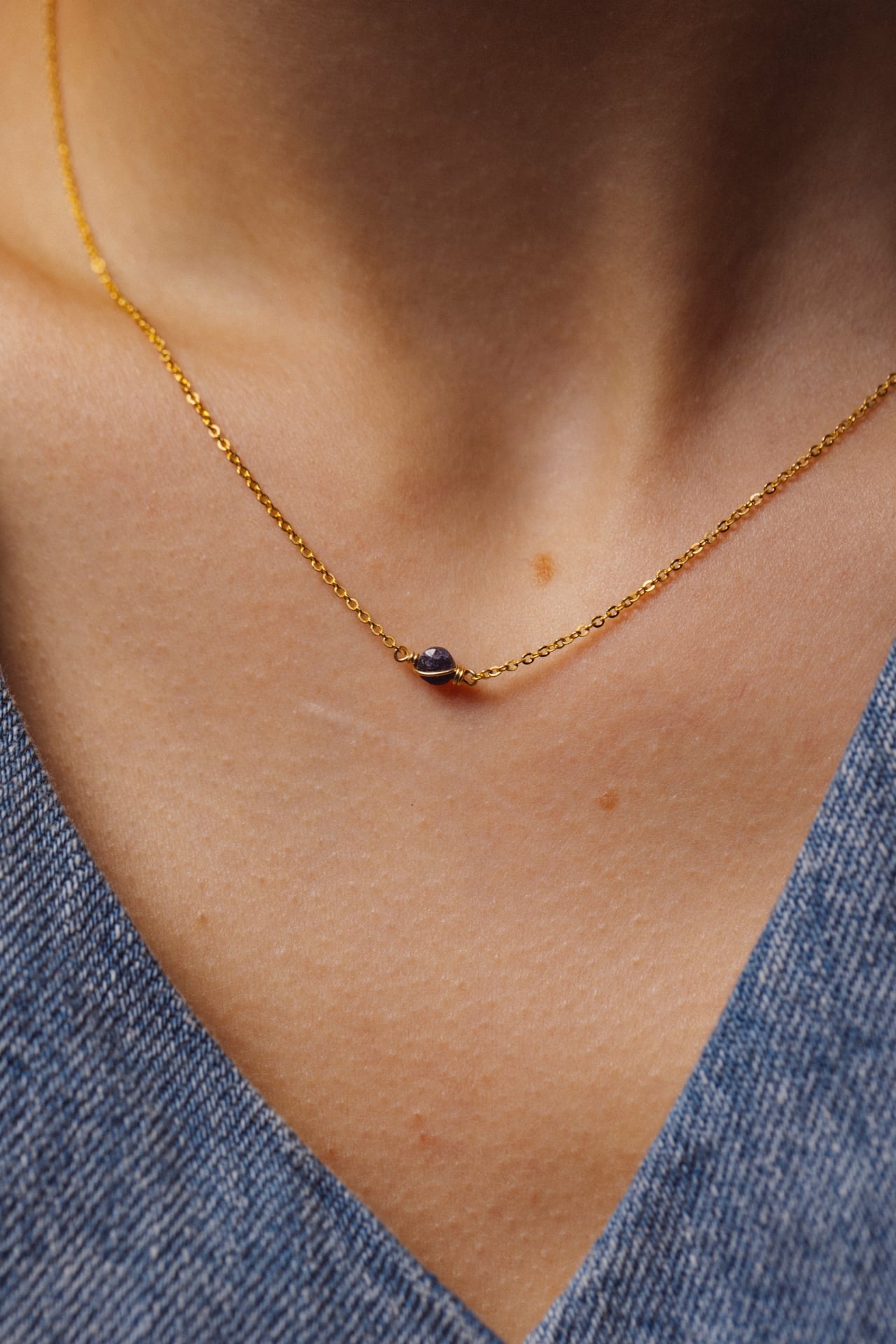 Minimalism and structure, the Stella necklace is a must-have piece with a light and airy design. A fine stone, cut into facets, tied on a delicate gold chain adorns the neck with elegance and modernity.