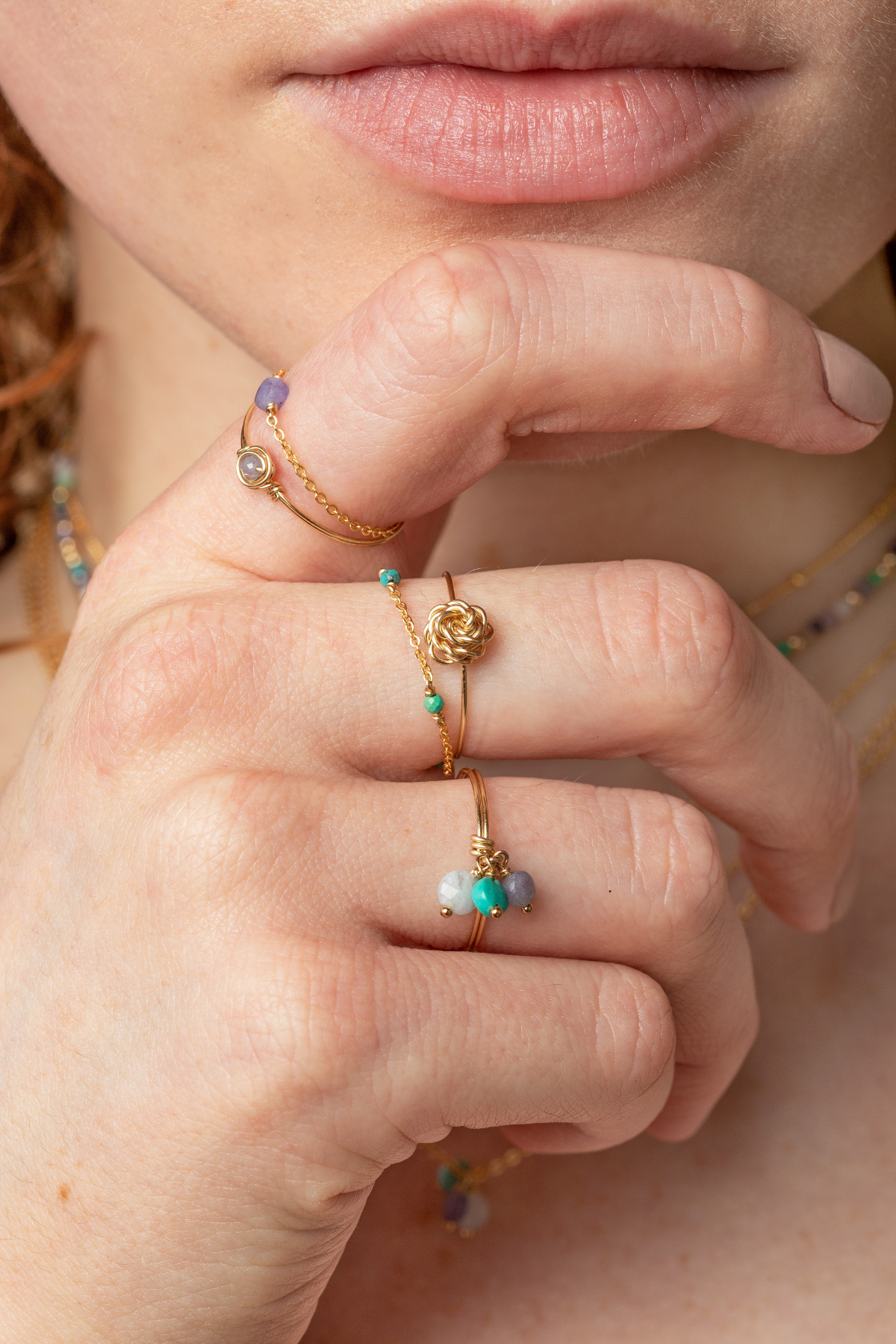 Wear it with Chance or Stella chain rings of different stones, or under a rigid ring to emphasize it!