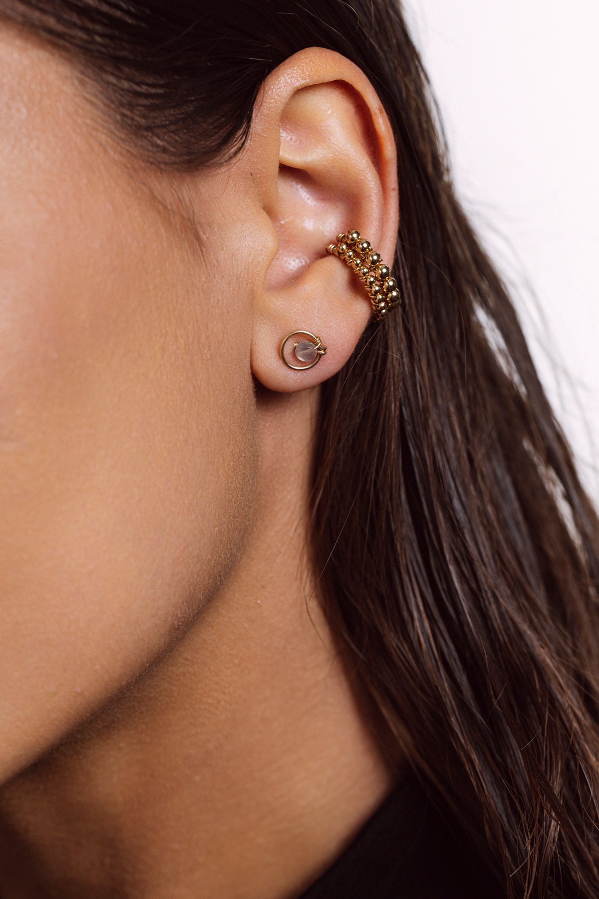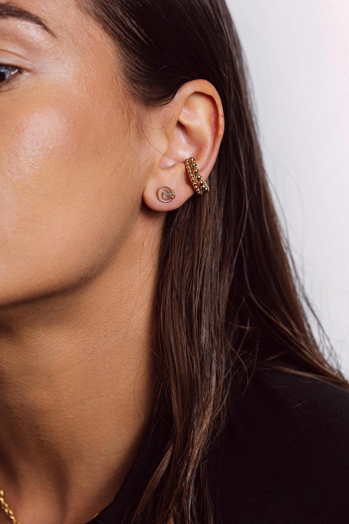 Ear jewelry, the fake Perlé piercing is an essential detail.