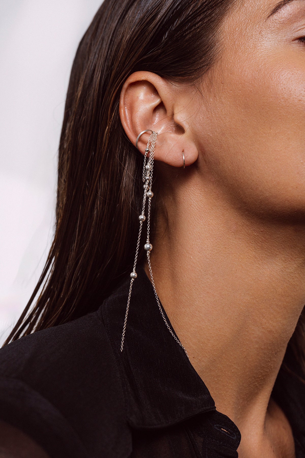 The Maia Faux Piercing is a unique and elegant piece, designed to add a touch of style without commitment. With a delicate 17 cm chain and smooth round beads of various sizes, this jewel is perfect to complete your look with a touch of originality and refinement.