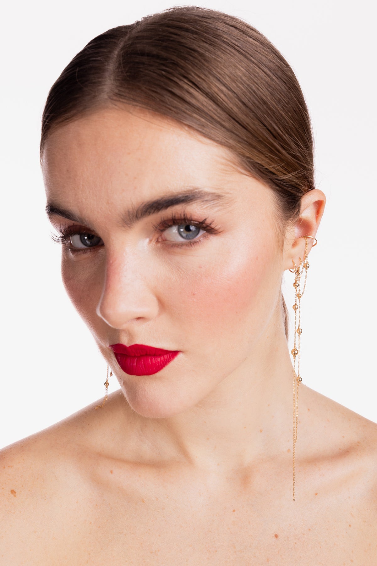 The Maia Faux Piercing is a unique and elegant piece, designed to add a touch of style without commitment. With a delicate 17 cm chain and smooth round beads of various sizes, this jewel is perfect to complete your look with a touch of originality and refinement.