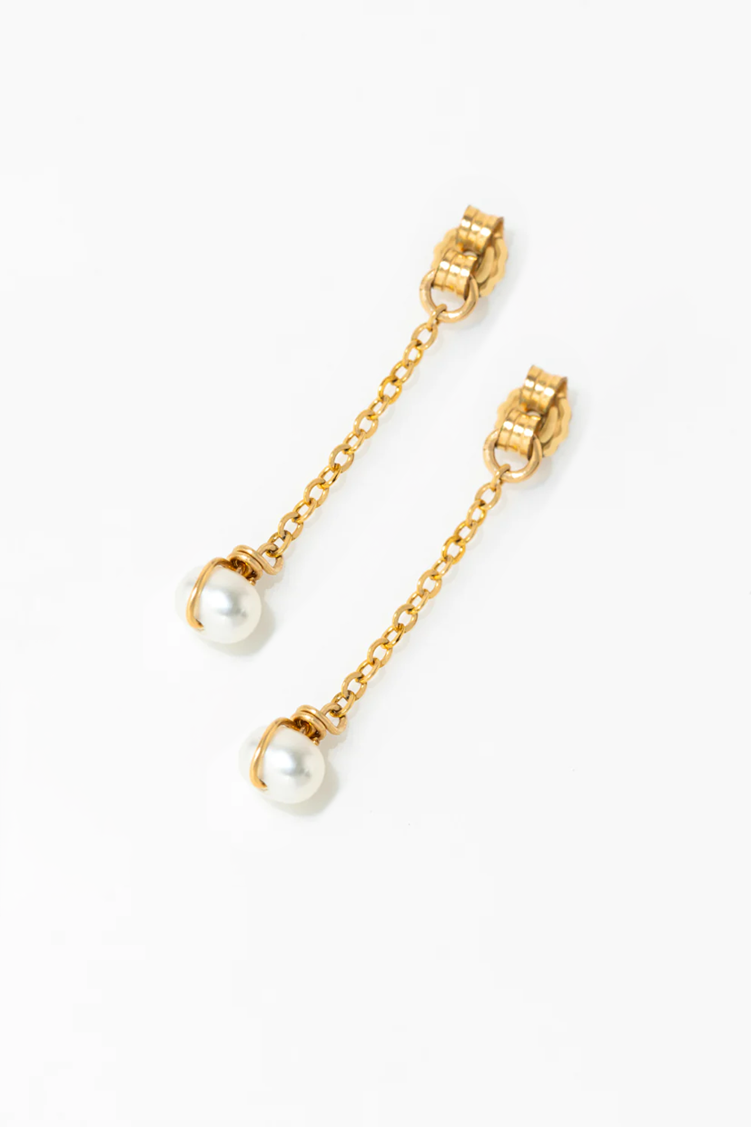 The Stella clasp consists of a butterfly earring, dressed with a chain, and ending with a cultured pearl.
