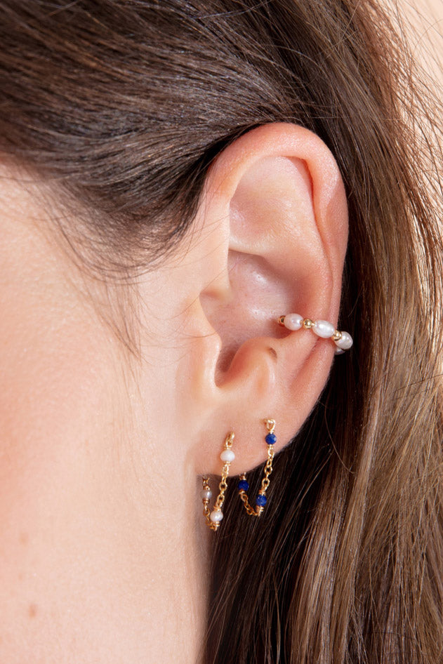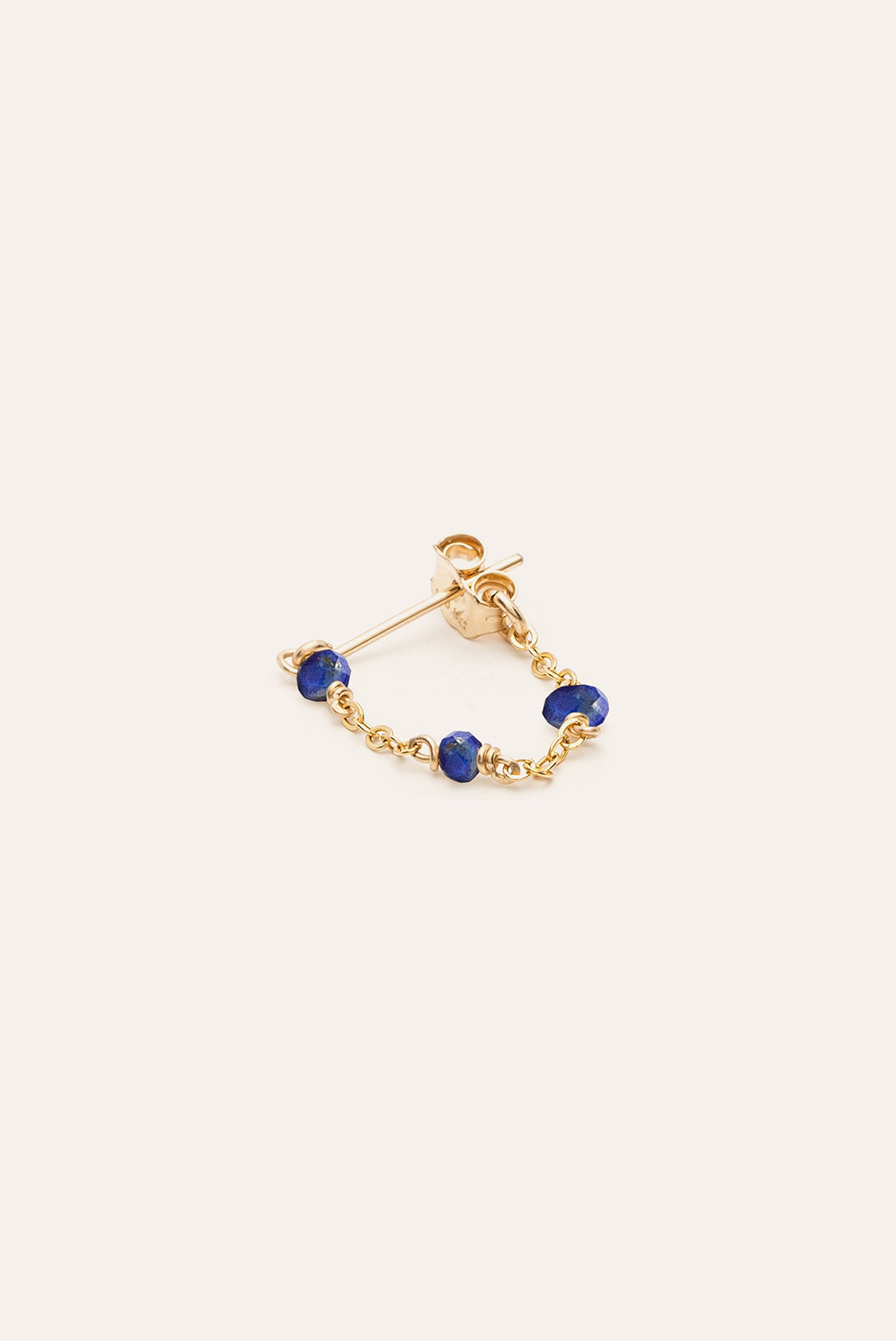 The mini satellite chain earrings are made of a thin chain encrusted with small faceted stones of 2mm. They are available in gold-filled and silver plated.