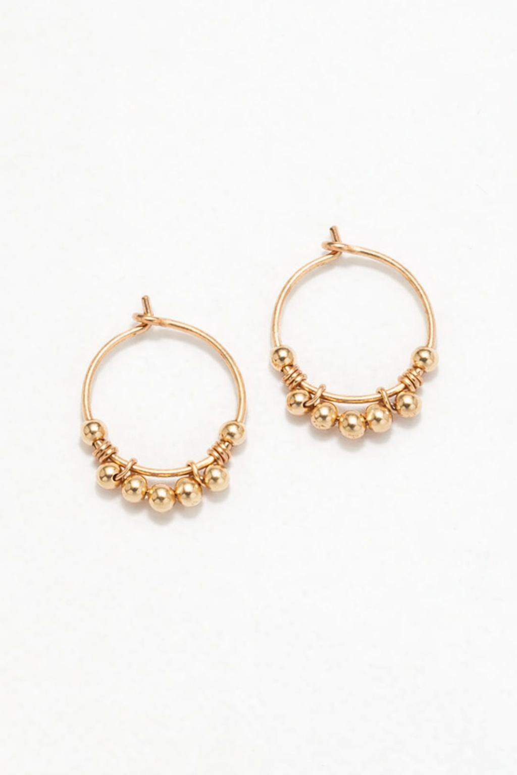 Singular jewelry, the mini Dentelle hoop earrings highlight the artisanal knowledge specific to the house, the art of thread. On a ring made of gold wire, a succession of smooth gold pearls are woven to subtly adorn the ear.