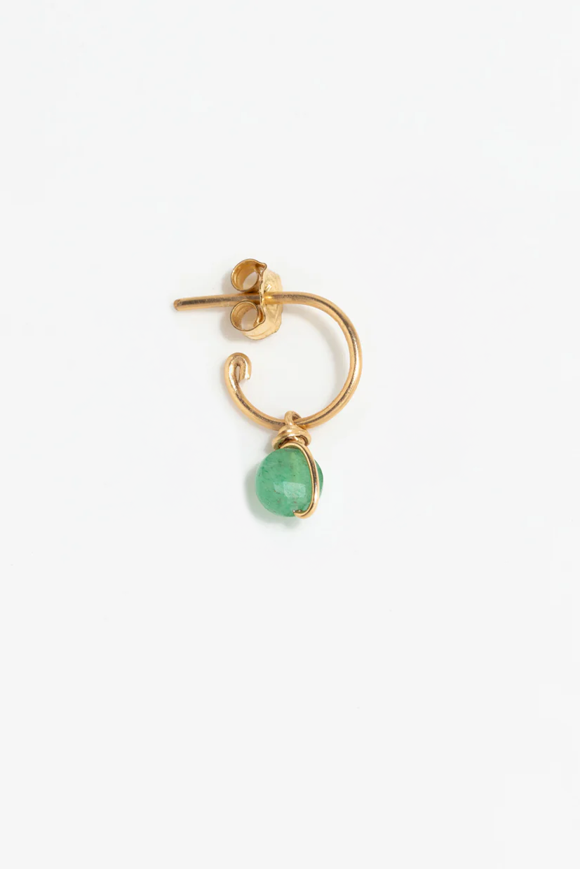 Singular jewels, the Stella mini hoops highlight the artisanal craftsmanship unique to the house, the art of wire. On a ring formed by a thread of gold, a faceted natural stone is woven and delicately intertwined to subtly adorn the ear.