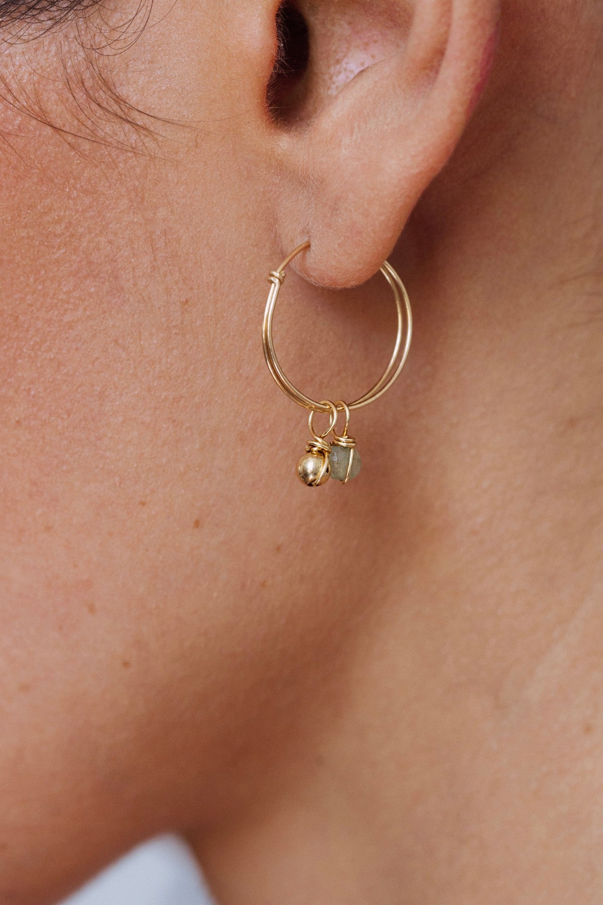 A faceted natural stone is delicately entwined with a thread of gold to create a minimalist and unique pendant.