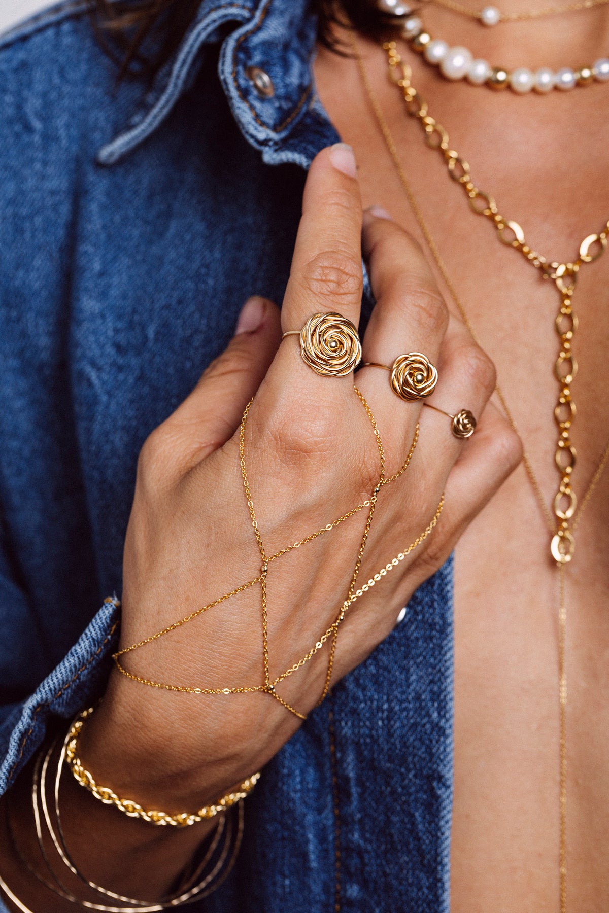 The Medium Rosa Ring is a symbol of refinement and simplicity. With a diameter of 1.3 cm, this rolled gold ring is perfect for those looking for a touch of delicacy. It stands out for its timeless elegance, ideal for completing your daily outfits.