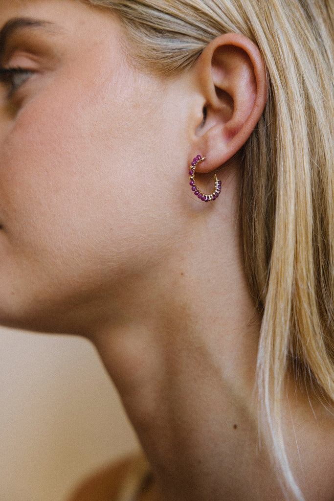 The Frida medium hoop earrings showcase the house's own artisanal know-how: the art of thread. On a ring made of gold thread, and inspired by the pavé setting in jewelry, an invisible weave of fine faceted stones with divine reflections is revealed.