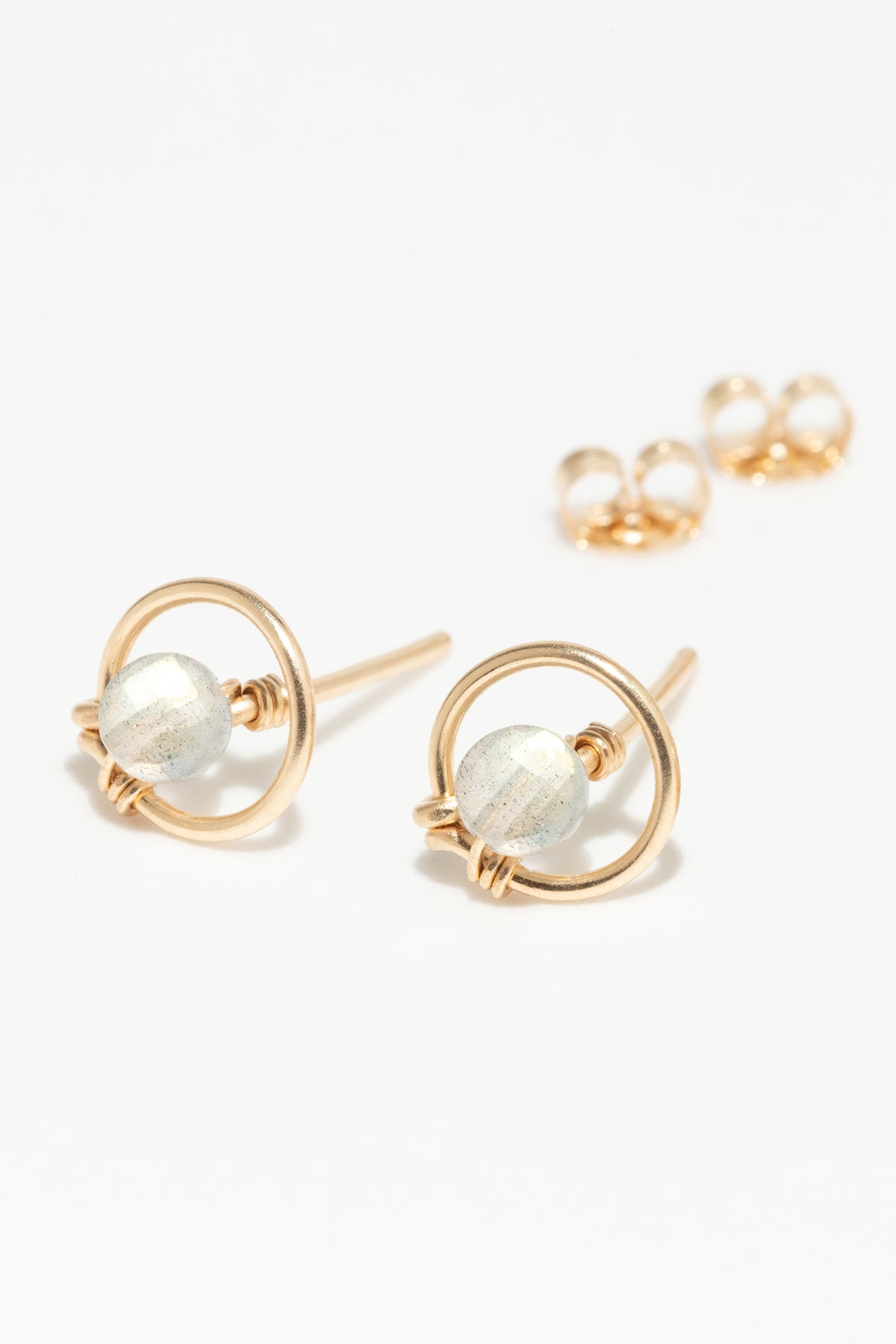 An interpretation of the solitaire, the Swan studs showcase a natural stone woven onto a precious gold thread.